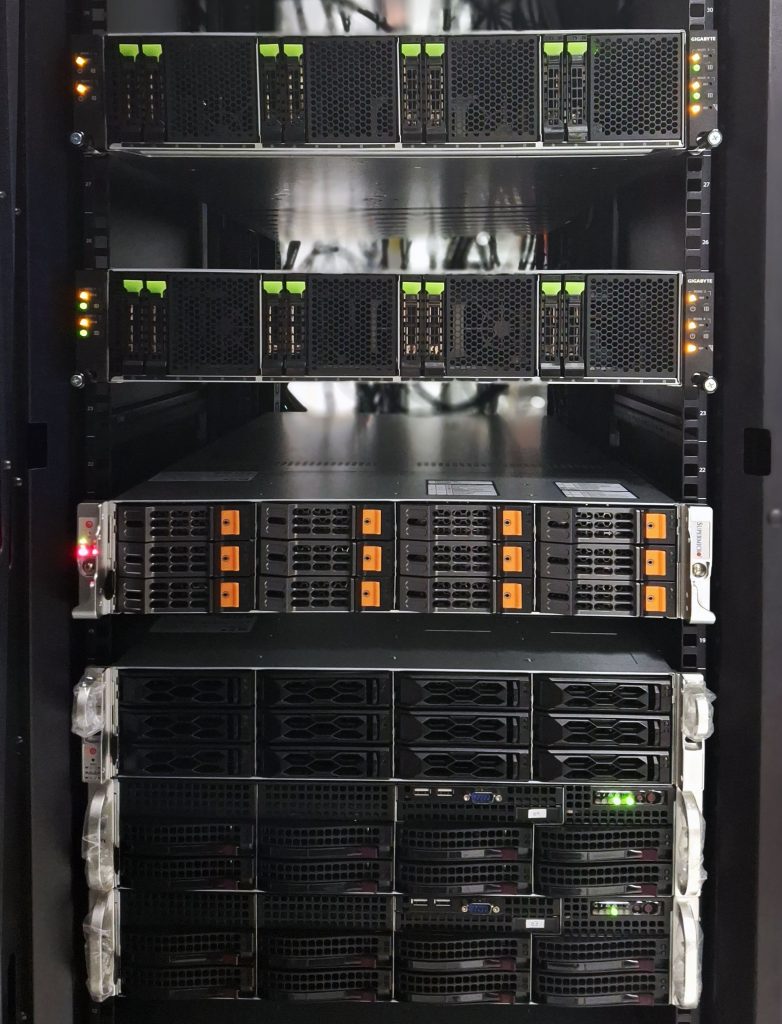 La infraestructura incorporada consiste en un sistema de cómputo de alta densidad compuesto por dos chasis GIGABYTE H273-Z80 (2U), que integran un total de 8 nodos independientes. Cada nodo está equipado con procesadores AMD EPYC de 5ª Generación (Turin) 9255 y 192 GB de memoria RAM DDR5, configurados para soportar cargas de trabajo paralelas masivas y aplicaciones de alto desempeño.